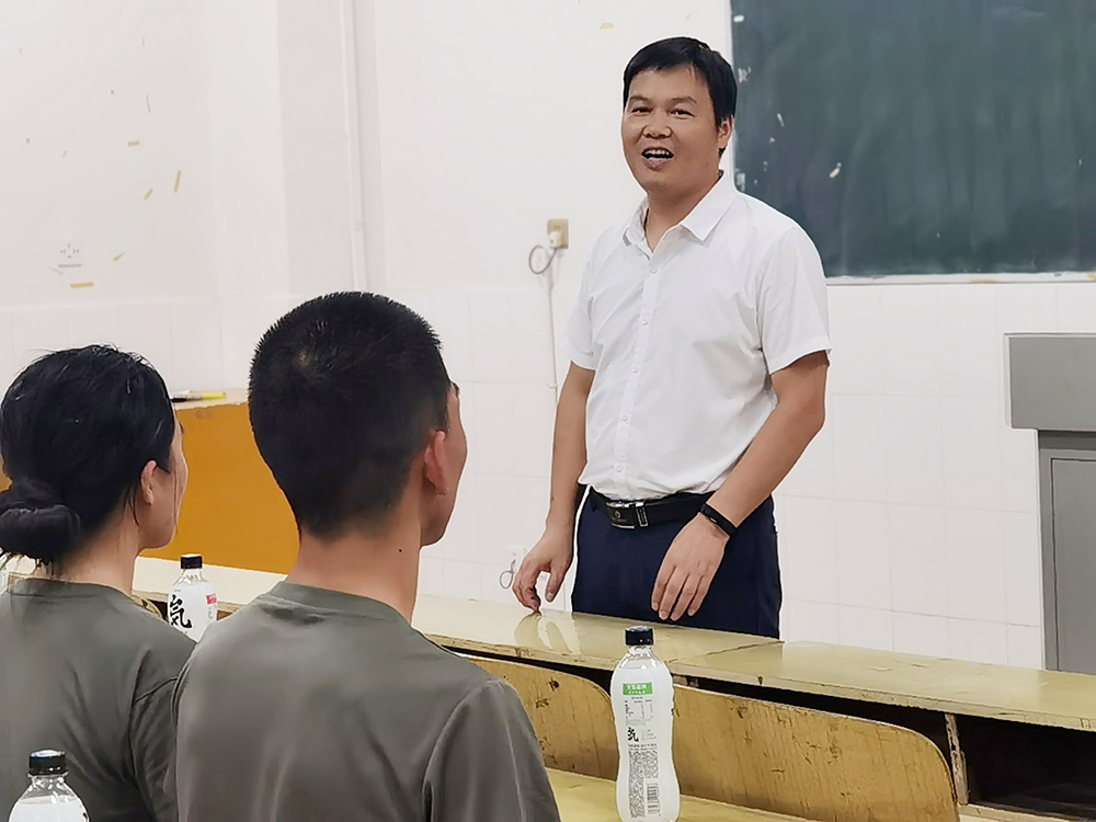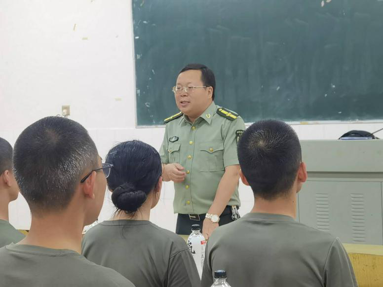 图为 太阳成集团tyc234cc王江生老师看望集训教官时发言