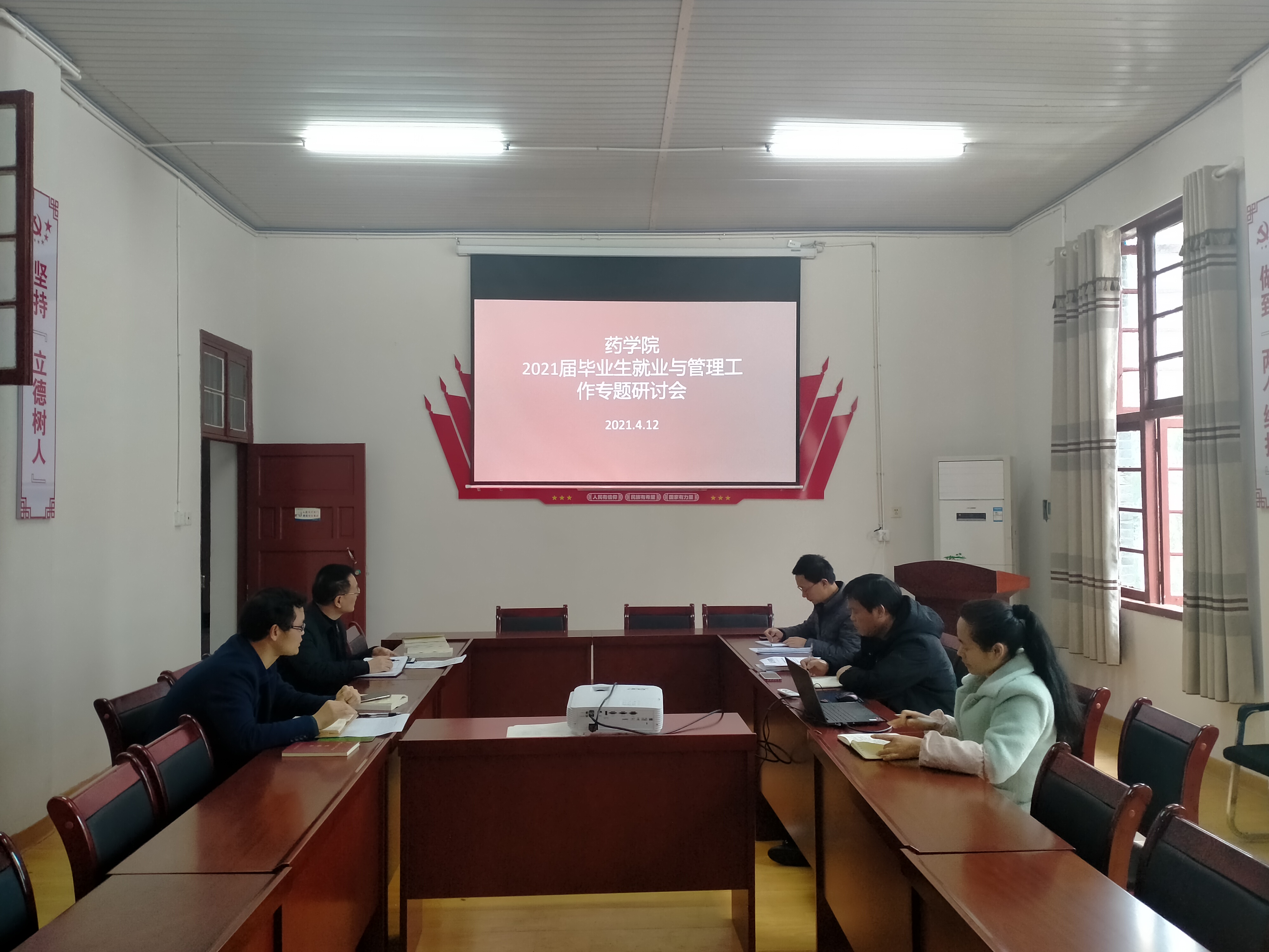 本网讯:(石静咏诗)为了加强公司毕业生就业与管理工作,提高工作的精准性和有效性,帮助员工顺利毕业、高质量就业、文明离校,4月12日下午,太阳成集团tyc234cc领导班子、院办、教务办老师在党员活动室召开2021届毕业生就业与管理工作专题研讨会。会议由陈功锡经理主持。