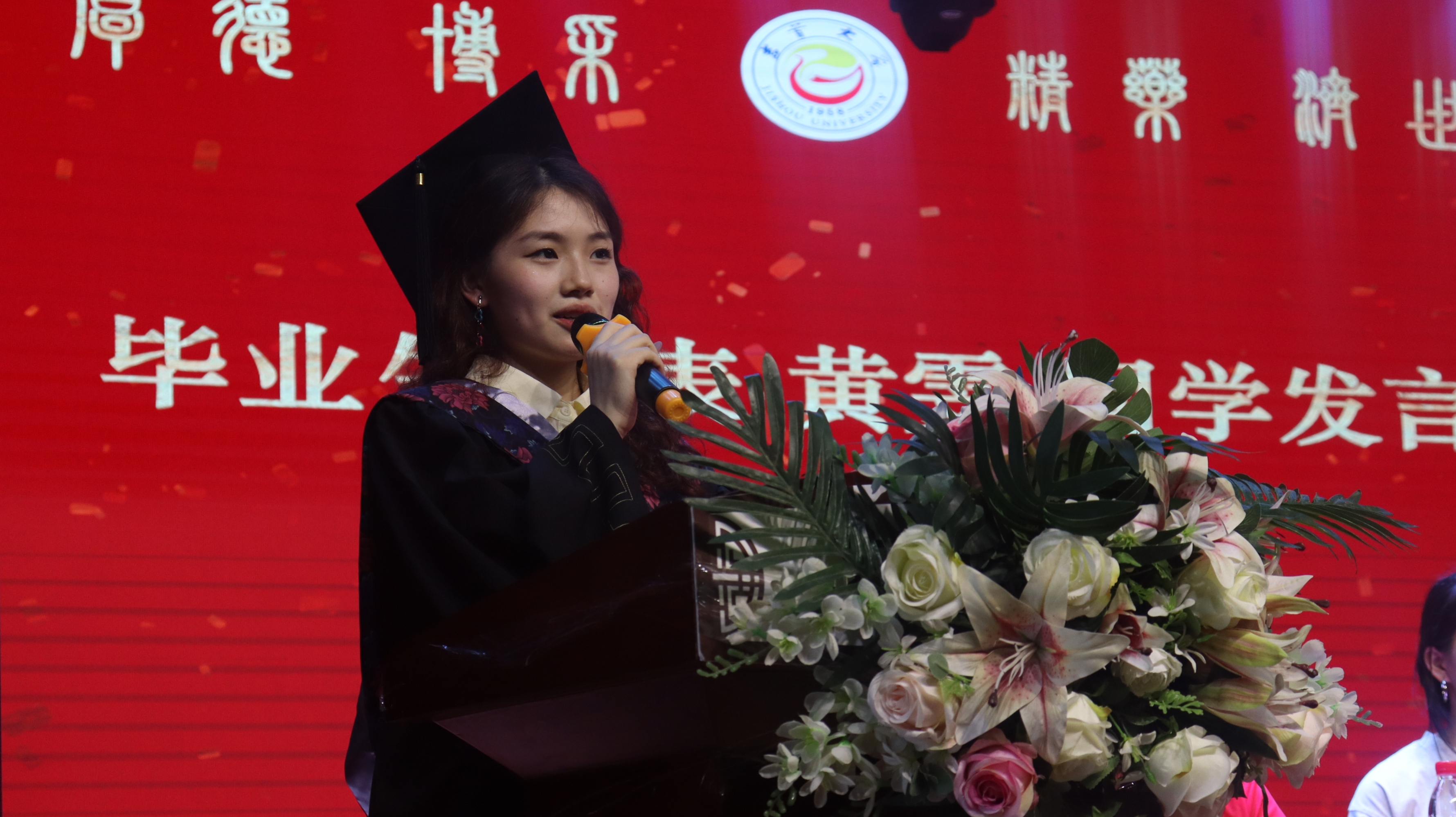 图为 毕业生代表黄雯发言