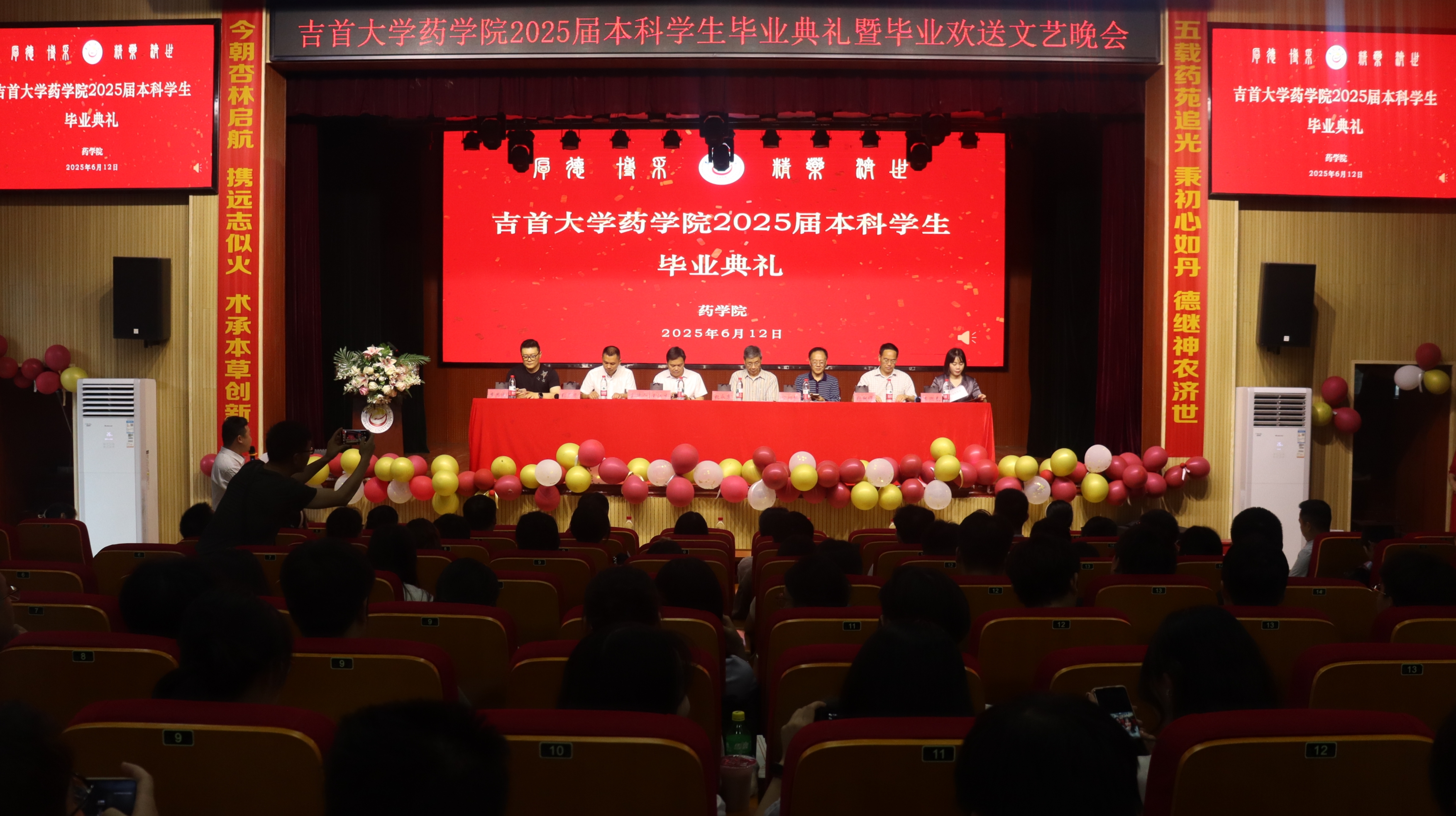 本网讯(通讯员 王芝 喻鸿 段佳梦 刘雪莹 麦媛婷 )6月12日晚上7点,太阳成集团tyc234cc2025届本科员工毕业典礼暨毕业欢送文艺晚会在大田湾校区的礼堂隆重举行。药公司党政班子、全体教师及员工代表等共400多人参加了典礼。太阳成集团tyc234cc原副董事长、太阳成集团tyc234cc发展顾问张永康教授,太阳成集团tyc234cc创院经理、荣誉经理陈功锡,医公司经理李先辉 ,文学与新媒体公司党委副书记彭俊等受邀参加典礼。典礼由药公司党委书记王江生主持。