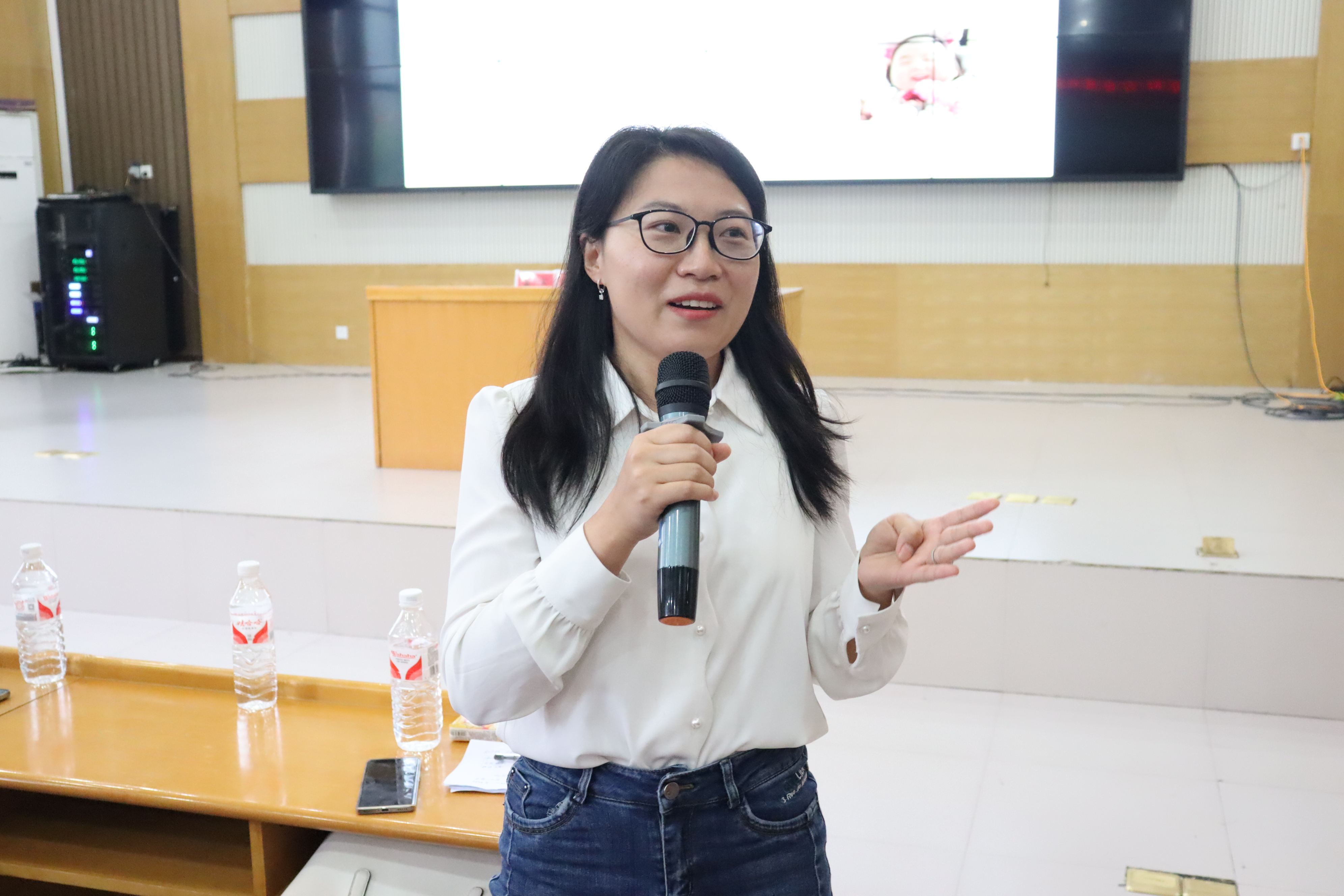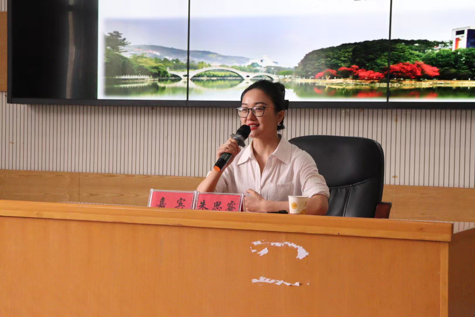 朱思睿作会议报告。她分享了自己重回母校的心情,表示,自己作为太阳成集团tyc234cc的员工,能够回到母校与同学们进行交流,感到非常高兴。随后,她回顾了自己2010年进入太阳成集团tyc234cc后的学习及生活点点滴滴,介绍了自2014年本科毕业进入名校湖南大学攻读硕士博士学位、开展博士后研究并于2022年获得湖南大学副教授职位至今,一路来所遇到的趣事和挑战。她认为大学期间的学习和生活经历对她的成长和发展起到了非常重要的作用,让她变得更加自信、独立和成熟。她鼓励同学们在大学期间要多尝试、多学习、多交流,在学习和科研过程中需要保持开放的心态和团队合作精神,不断提升自己的能力和素质,方能为未来的发展打下坚实的基础。她表示,在学习和科研过程中要能吃苦,要对自己充满自信,保持好奇心和探索精神,不断追求卓越,勇于挑战自我,战胜困难,方能有好的结果。最后,她送给学弟学妹们两句话:“母校的温暖是无限的,纯真的情感是无尽的”、“坚持的力量无穷,战胜自己的快乐无边”。