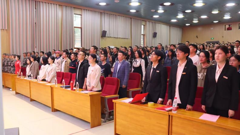 最后,全体起立奏唱校歌,在激昂的校歌声中,大会圆满闭幕。