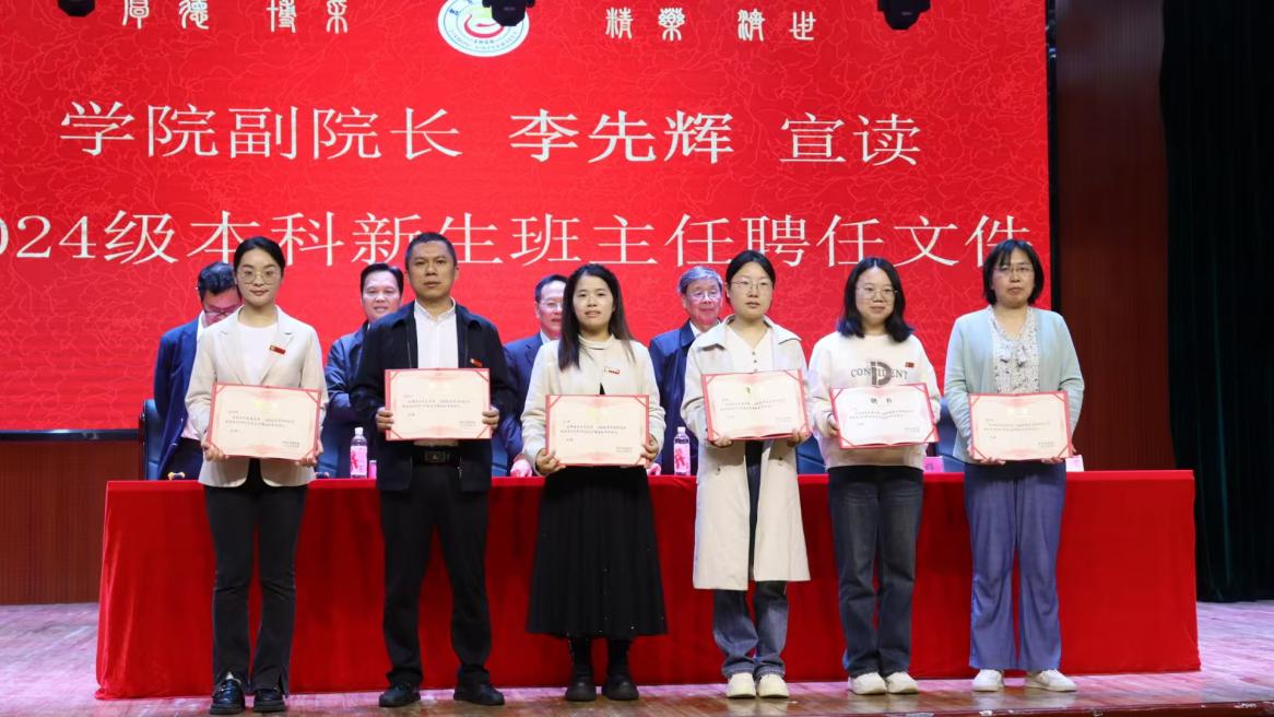 副经理李先辉宣读了2024级本科新生班主任的任命文件。公司领导为班主任颁授了聘书,为各班授班旗。