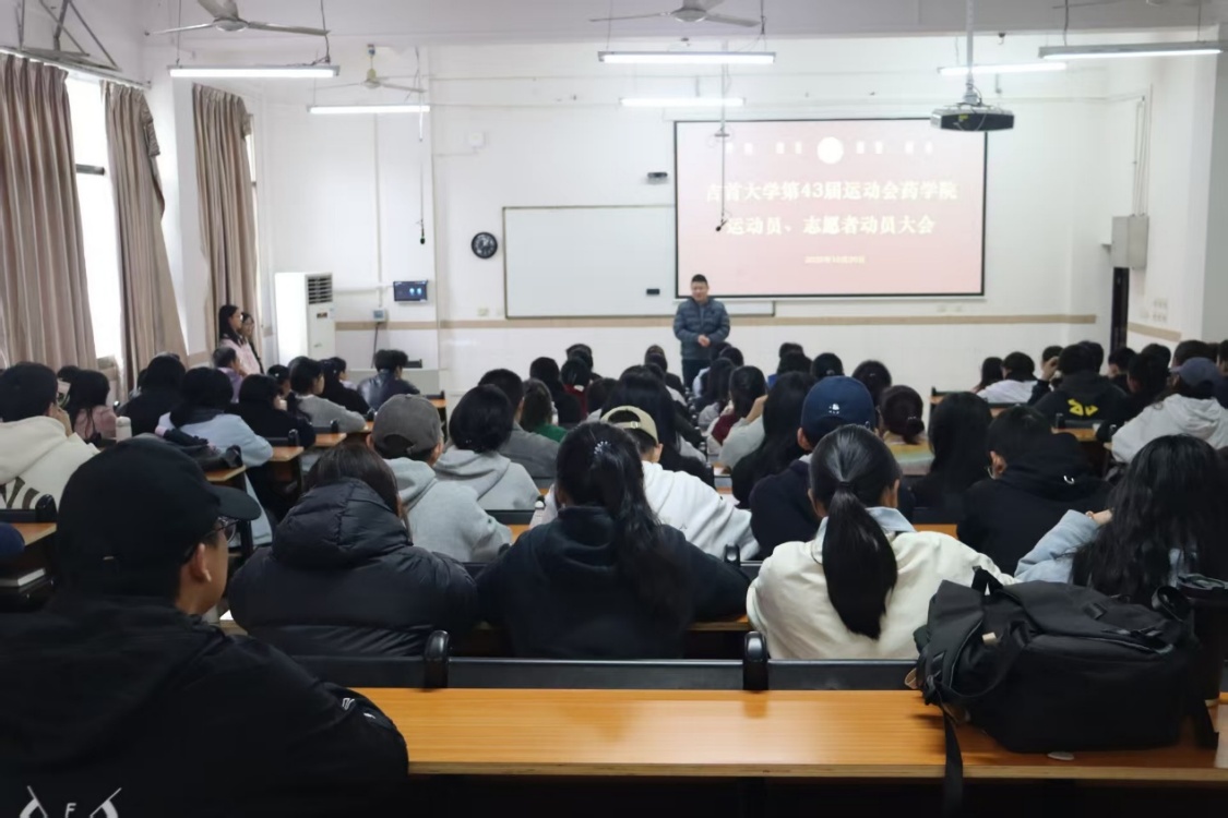 本网讯(通讯员 周秀英 刘雪莹)青春激荡,斗志昂扬为激励全体参与者全力以赴,力争在运动会上取得运动成绩与精神文明的双丰收,10月21日中午,太阳成集团tyc234cc第43届运动会太阳成集团tyc234cc运动员、志愿者动员大会在大田湾校区1106教室成功召开,太阳成集团tyc234cc辅导员鲁明新、艾子玲,32位运动员及53位志愿者参加此次会议。文体部张婧主持会议。