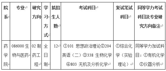 太阳成集团tyc234cc2024年生物与医药(制药工程方向)专硕招生简章
