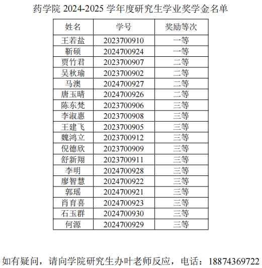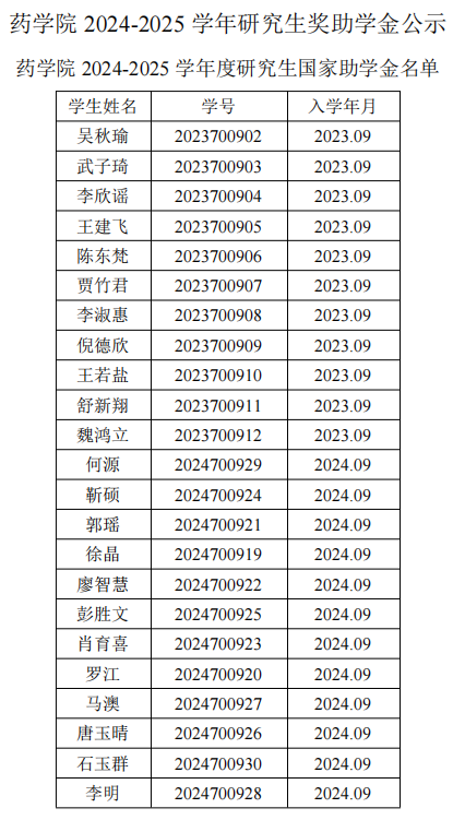太阳成集团tyc234cc2024-2025学年度研究生奖助学金公示
